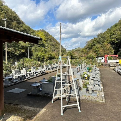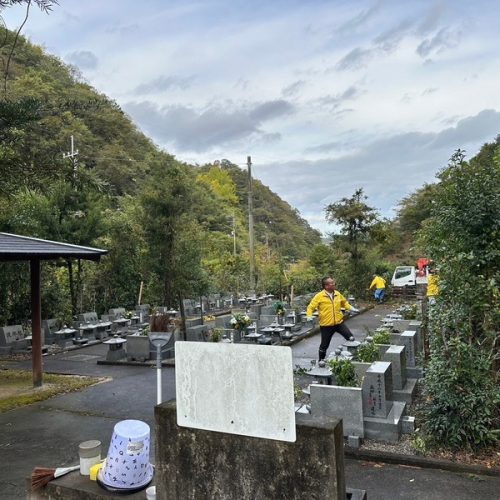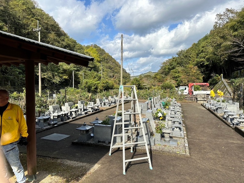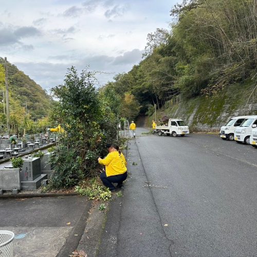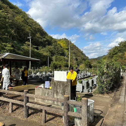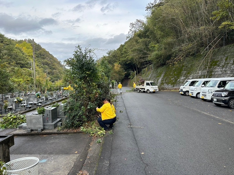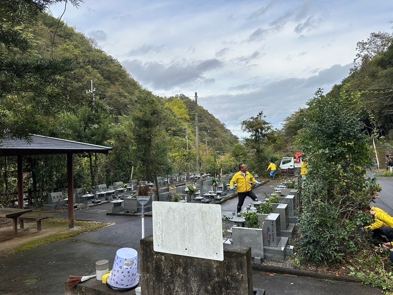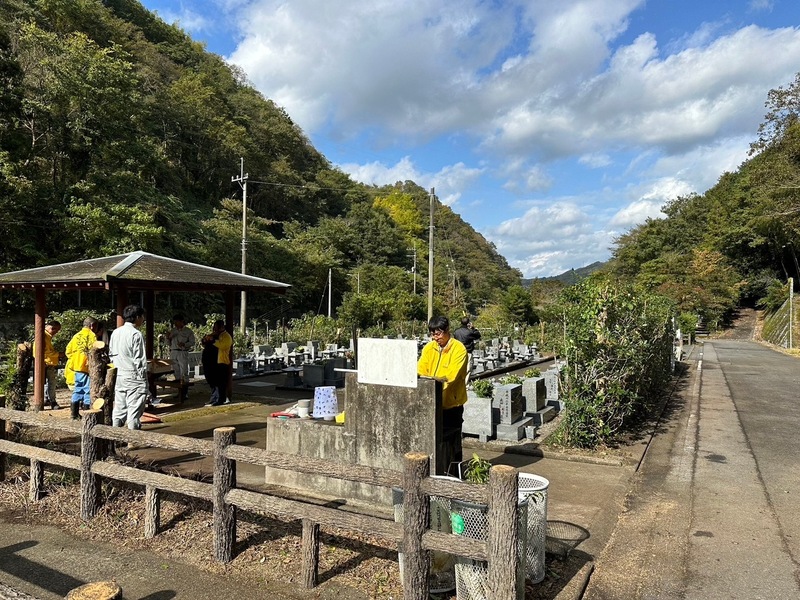 松山市食場町 横谷霊園の清掃を行いました。11名出席。